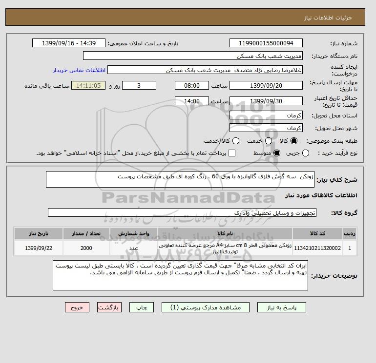1 | 1134210211320002 | زونکن معمولی قطر 8 cm سایز A4 مرجع عرضه کننده تعاونی تولیدی البرز | عدد | 2000 | 1399/09/22 |