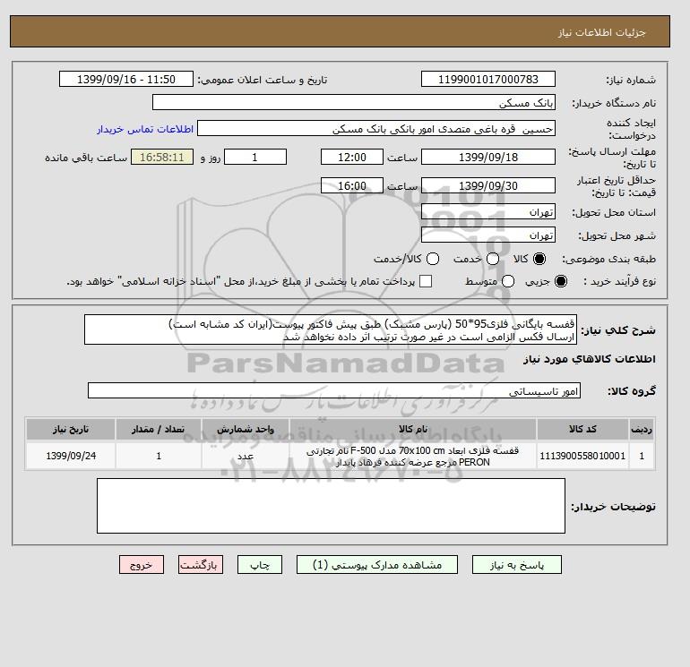 استعلام قفسه بایگانی فلزی95*50 (پارس مشبک) طبق پیش فاکتور پیوست(ایران کد مشابه است) ارسال فکس الزامی است در غیر صورت ترتیب اثر داده نخواهد شد, استعلام قفسه بایگانی فلزی95*50 (پارس مشبک) طبق پیش فاکتور پیوست(ایران کد مشابه است) ارسال فکس الزامی است در غیر صورت ترتیب اثر داده نخواهد شد