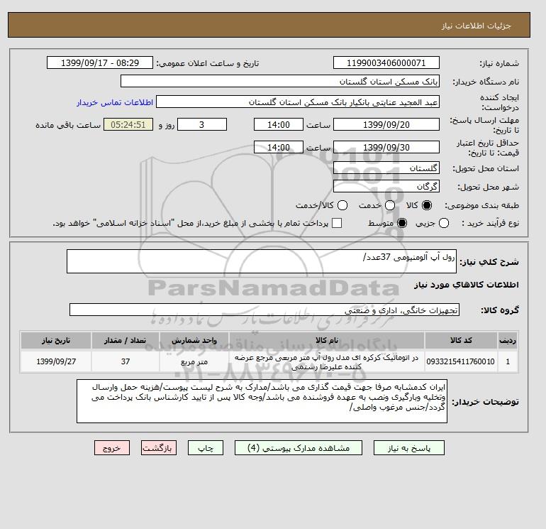 نام دستگاه خریدار:بانک مسکن استان گلستان