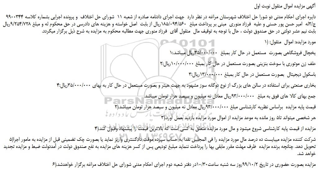 آگهی مزایده اموال منقول نوبت اول