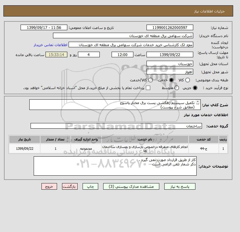 نام دستگاه خریدار:شرکت سهامی برق منطقه ای خوزستان