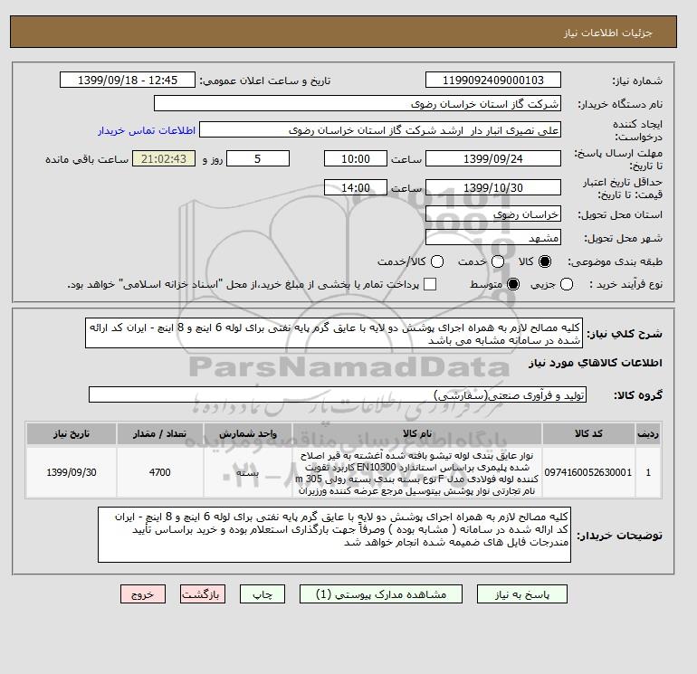 نام دستگاه خریدار:شرکت گاز استان خراسان رضوی