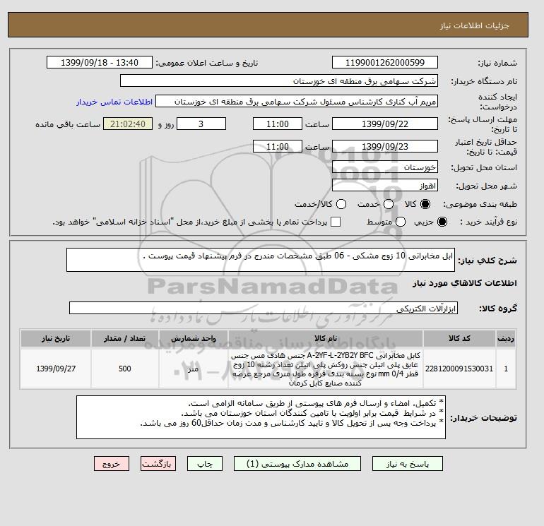 شرح کلی نیاز: ابل مخابراتی 10 زوج مشکی - 06 طبق مشخصات مندرج در فرم پیشنهاد قیمت پیوست .