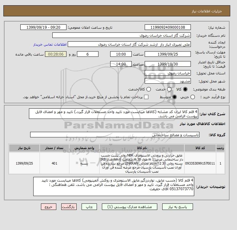 نام دستگاه خریدار:شرکت گاز استان خراسان رضوی