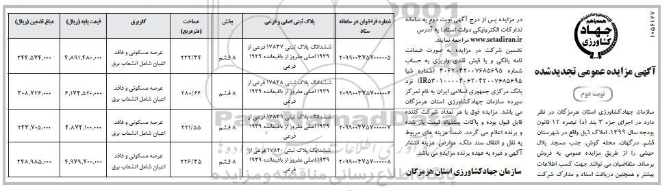 مزایده،مزایده فروش املاک کاربری مسکونی نوبت دوم