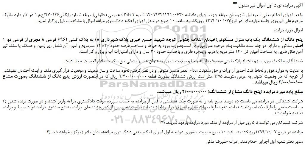 "آگهی مزایده نوبت اول اموال غیر منقول "