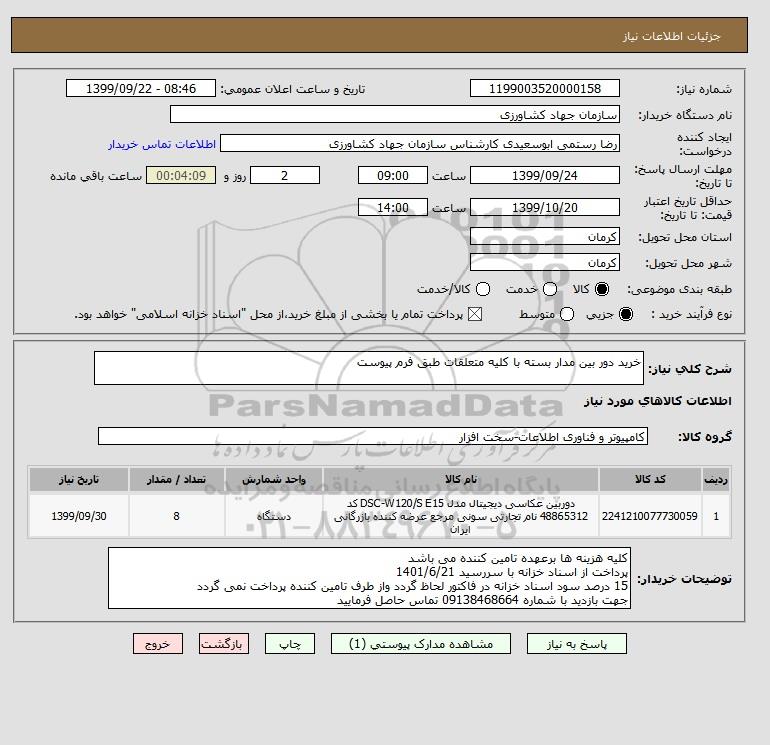 شرح کلی نیاز: خرید دور بین مدار بسته با کلیه متعلقات طبق فرم پیوست