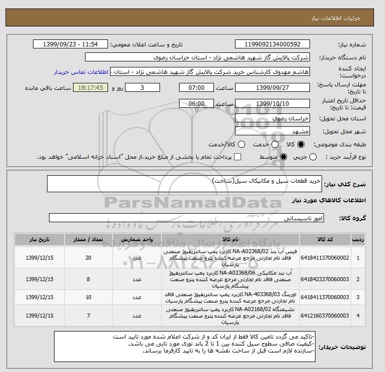 شرح کلی نیاز: خرید قطعات سیل و مکانیکال سیل(ساخت)