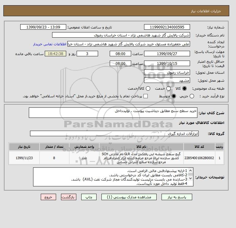 شرح کلی نیاز: خرید سطح سنج مطابق دیتاشیت پیوست . تولیدداخل