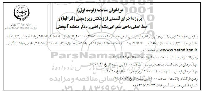 مناقصه پروژه اجرای قسمتی از زهکشی زیرزمینی, فراخوان مناقصه عمومی , مناقصه پروژه اجرای قسمتی از زهکشی زیرزمینی