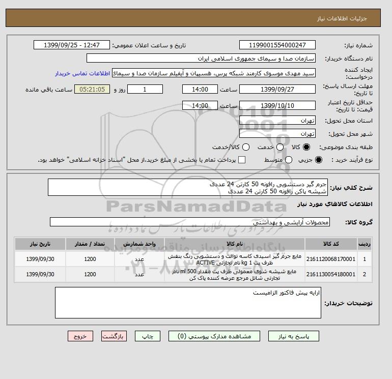 نام دستگاه خریدار:سازمان صدا و سیمای جمهوری اسلامی ایران