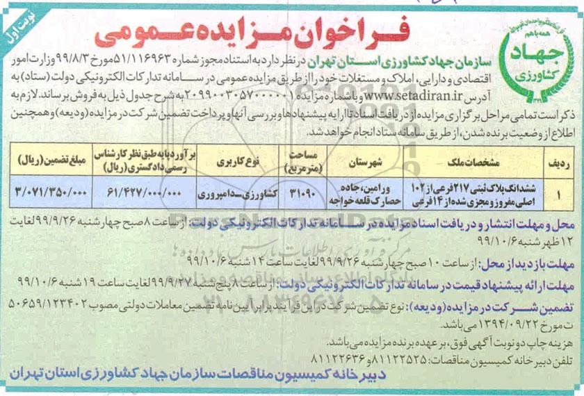 زمان مزایده تا 99.10.6