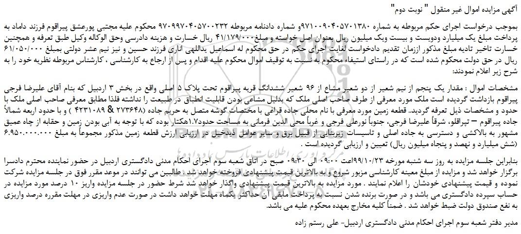 "آگهی مزایده اموال غیر منقول " نوبت دوم