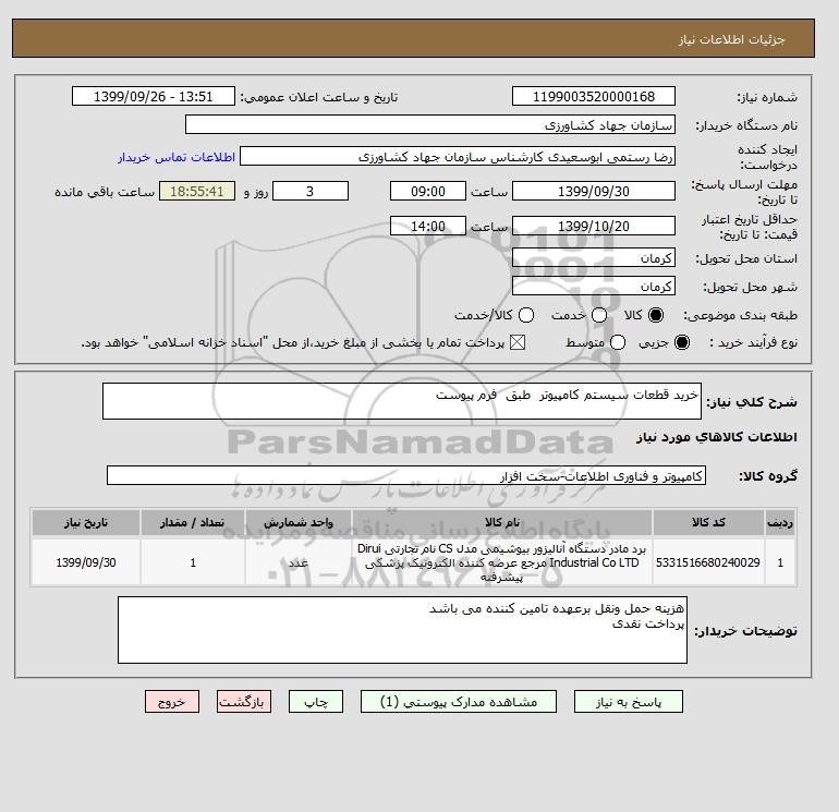شرح کلی نیاز: خرید قطعات سیستم کامپیوتر طبق فرم پیوست