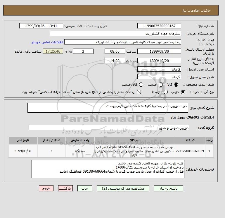 شرح کلی نیاز: خرید دوربین مدار بستهبا کلیه متعلقات طبق فرم پیوست