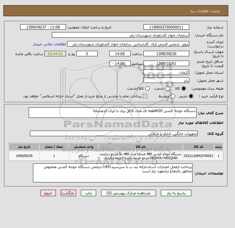 نام دستگاه خریدار:سازمان جهاد کشاورزی شهرستان رابر