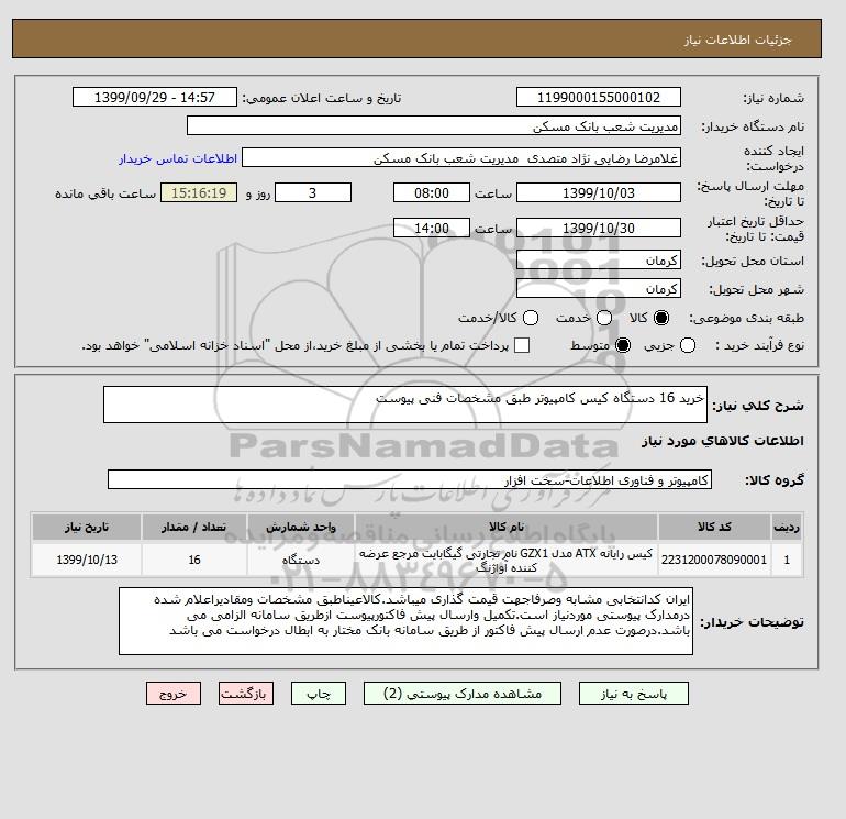شرح کلی نیاز: خرید 16 دستگاه کیس کامپیوتر طبق مشخصات فنی پیوست