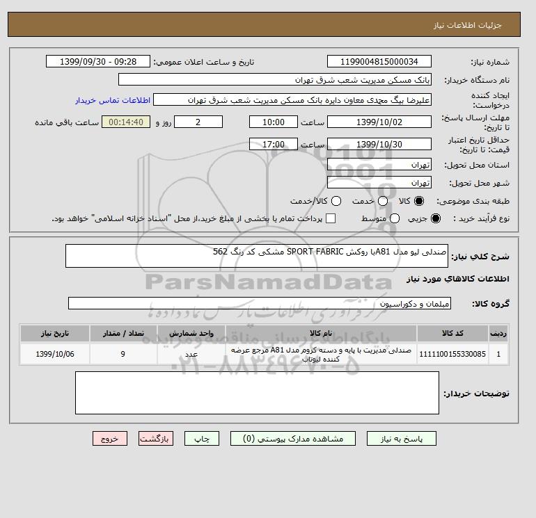 نام دستگاه خریدار:بانک مسکن مدیریت شعب شرق تهران
