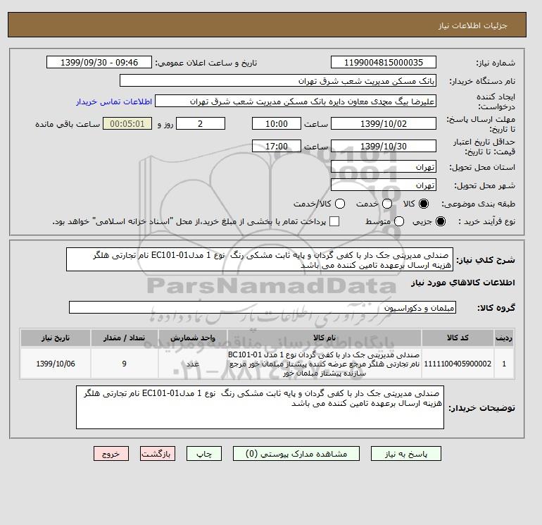 نام دستگاه خریدار:بانک مسکن مدیریت شعب شرق تهران
