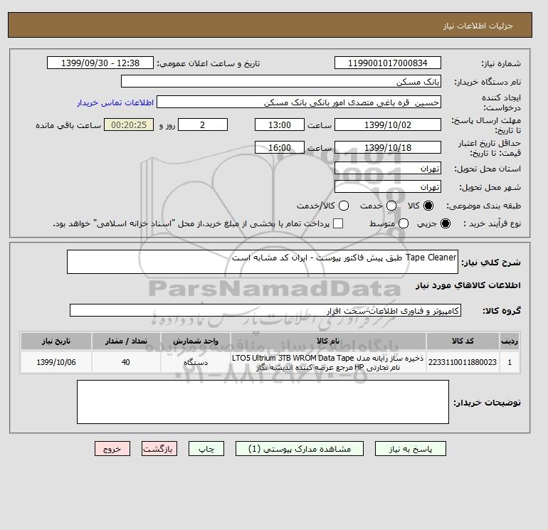 شرح کلی نیاز: Tape Cleaner طبق پیش فاکتور پیوست - ایران کد مشابه است