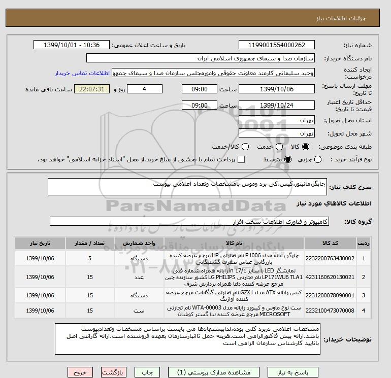 شرح کلی نیاز: چاپگر،مانیتور،کیس،کی برد وموس بامشخصات وتعداد اعلامی پیوست