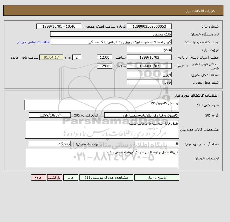 استعلام بها و موضوع استعلام استعلام وب کم کامپیوتر Pc به اطلاع کلیه شرکتها و افراد متخصص واجد شرایط میرساند، آگهی گذار در نظر دارد از طریق استعلام بها، نسبت به انتخاب و دریافت پیشنهادات اقدام نماید. این استعلام با کد آگهی ثبت شده در سامانه خبرگزاری پارس نماد : 2990035 منتشر شده است. مشخصات استعلام : تاریخ شروع استعلام: 1399/10/01 آخرین مهلت ارسال پیشنهاد قیمت : 1399/10/03 و محل اجرای پروژه : استان قزوین میباشد. استعلام قیمت مورد درخواست : استعلام وب کم کامپیوتر Pc با دستهبندیهای تخصصی و گروه های مرتبط : صوت و تصویر - وسایل عکاسی و دیتا پرژکتور, سالن های آمفی تئاتر ، سینما و جلسات, کامپیوتر, اینترنت شبکه, استعلام اطلاع رسانی میگردد. شرایط شرکت در استعلام آنلاین : ابتدا ثبت نام در سامانه استعلام پارس نماد و تکمیل مدارک موردنیاز و بارگذاری در سامانه رعایت تمامی ضوابط و الزامات مندرج در اسناد استعلام است.