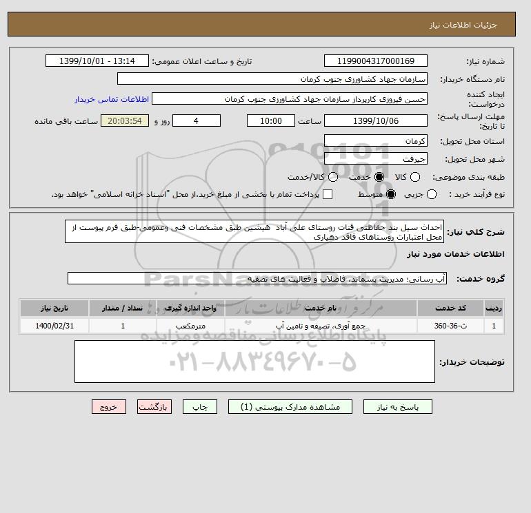 شرح کلی نیاز: احداث سیل بند حفاظتی قنات روستای علی آباد هیشین طبق مشخصات فنی وعمومی-طبق فرم پیوست از محل اعتبارات روستاهای فاقد دهیاری