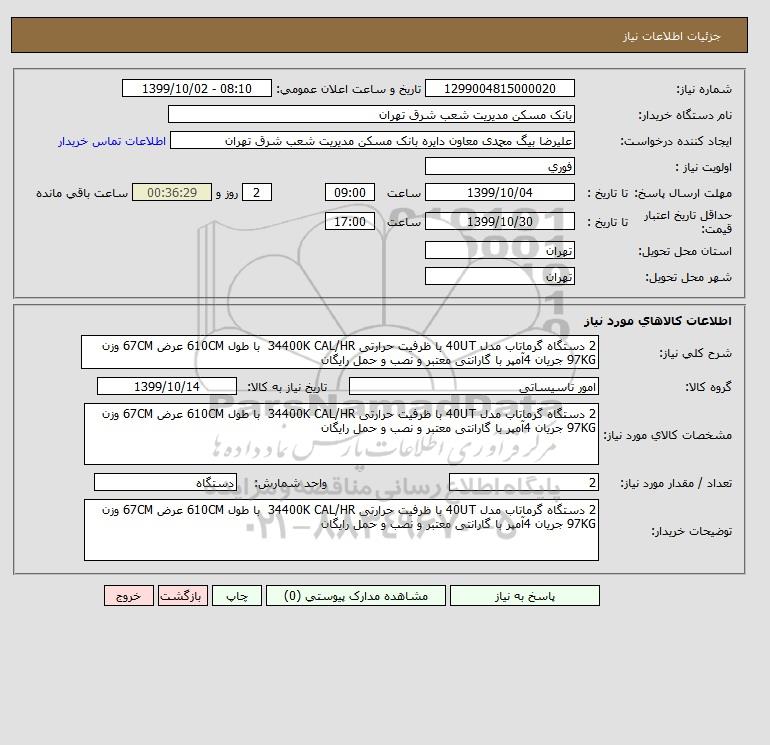 نام دستگاه خریدار:بانک مسکن مدیریت شعب شرق تهران