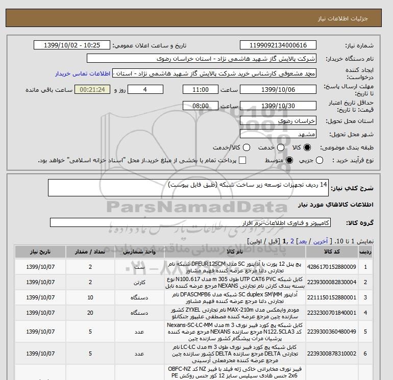 شرح کلی نیاز: 14 ردیف تجهیزات توسعه زیر ساخت شبکه (طبق فایل پیوست)
