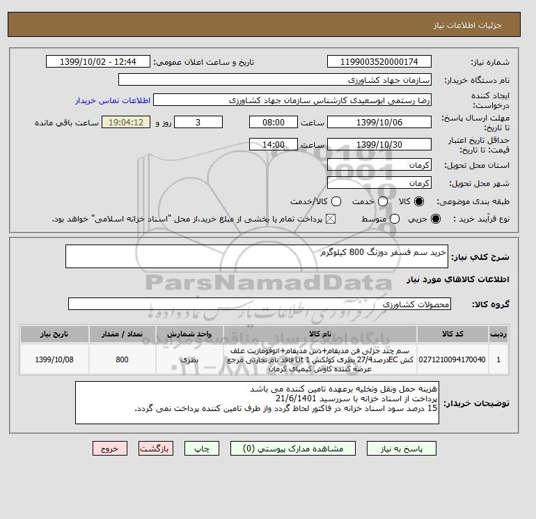شرح کلی نیاز: خرید سم فسفر دوزنگ 800 کیلوگرم