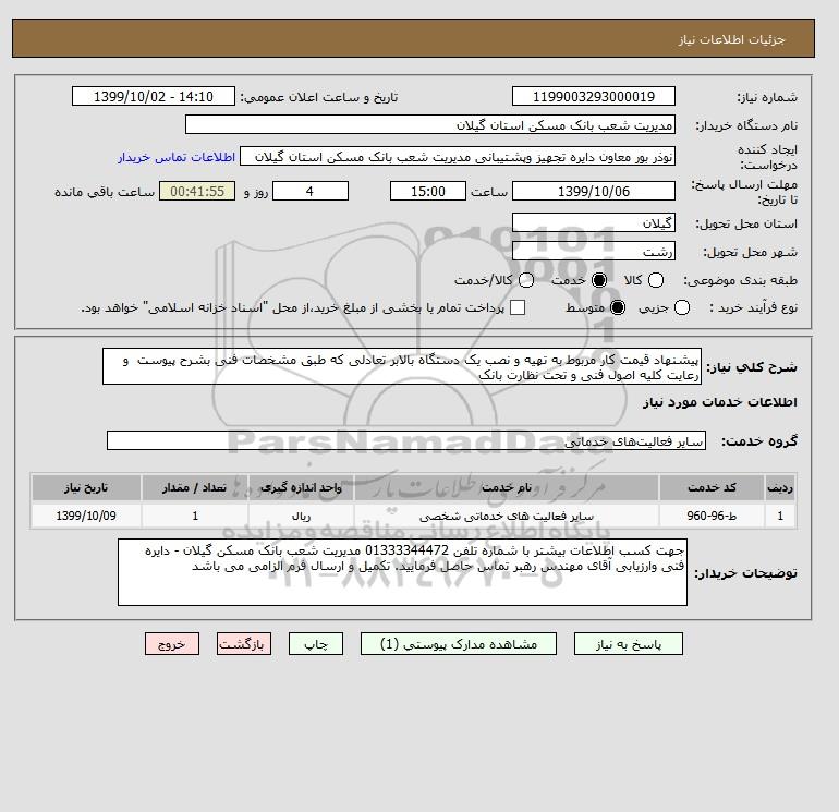 نام دستگاه خریدار:مدیریت شعب بانک مسکن استان گیلان
