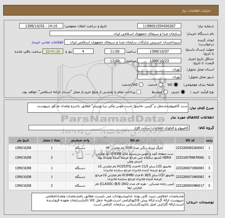 شرح کلی نیاز: ست کامپیوترمشتمل بر"کیس ،مانیتور ،ست موس وکی برد وپرینتر" مطابق باشرح وتعداد مذکور درپیوست