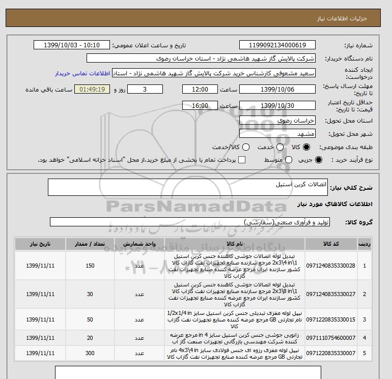 نام دستگاه خریدار:شرکت پالایش گاز شهید هاشمی نژاد - استان خراسان رضوی
