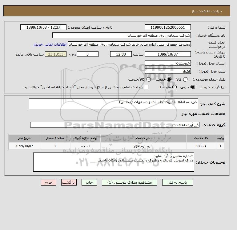 شرح کلی نیاز: خرید سامانه مدیریت جلسات و دستورات (مجلس)