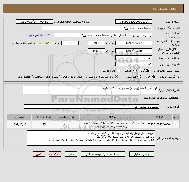 شرح کلی نیاز: کود آهن کلاته (پودری) به میزان 185 کیلوگرم