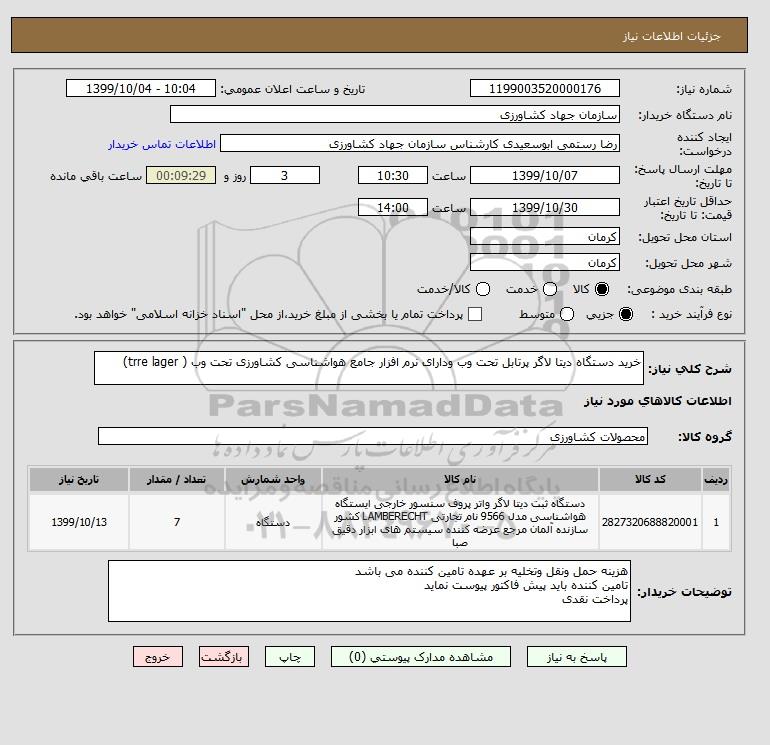 شرح کلی نیاز: خرید دستگاه دیتا لاگر پرتابل تحت وب ودارای نرم افزار جامع هواشناسی کشاورزی تحت وب ( trre lager)
