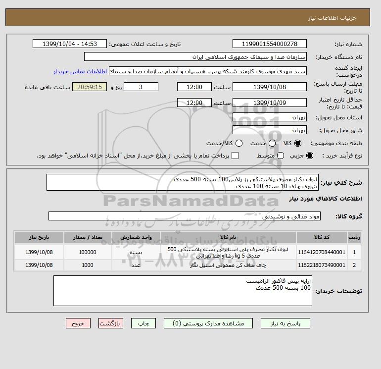 نام دستگاه خریدار:سازمان صدا و سیمای جمهوری اسلامی ایران