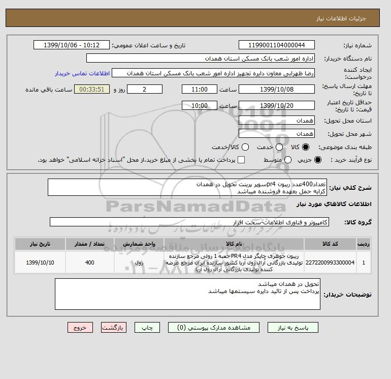 شرح کلی نیاز: تعداد400عدد ریبون pr4سوپر پرینت تحویل در همدان