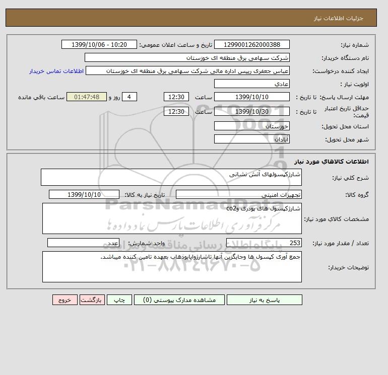 شرح کلی نیاز: شارژکپسولهای آتش نشانی