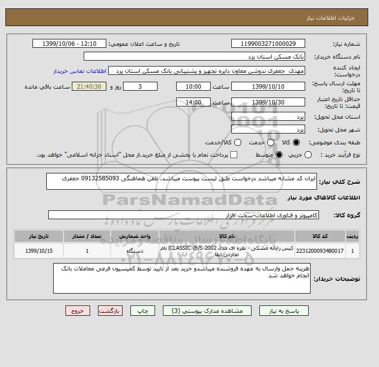 نام دستگاه خریدار:بانک مسکن استان یزد