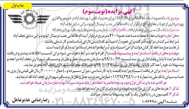 آگهی مزایده نوبت سوم چاپ اول ؟