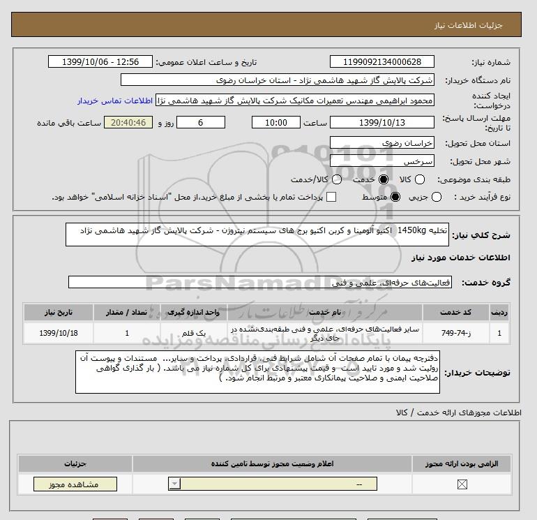 نام دستگاه خریدار:شرکت پالایش گاز شهید هاشمی نژاد - استان خراسان رضوی