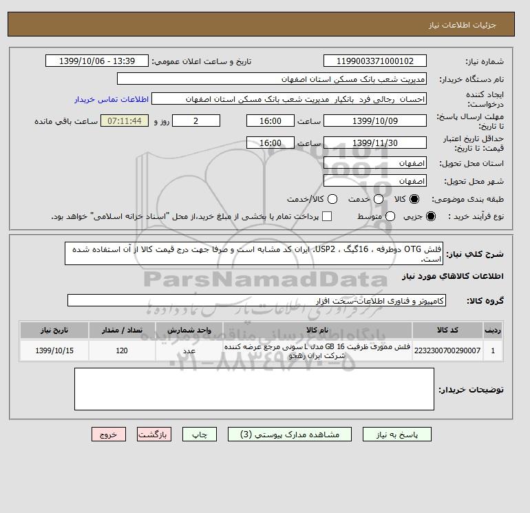 شرح کلی نیاز: فلش OTG دوطرفه ، 16گیگ ، USP2. ایران کد مشابه است و صرفا جهت درج قیمت کالا از آن استفاده شده است.