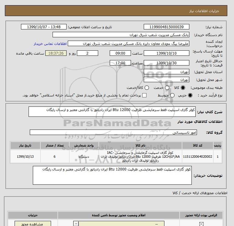 نام دستگاه خریدار:بانک مسکن مدیریت شعب شرق تهران