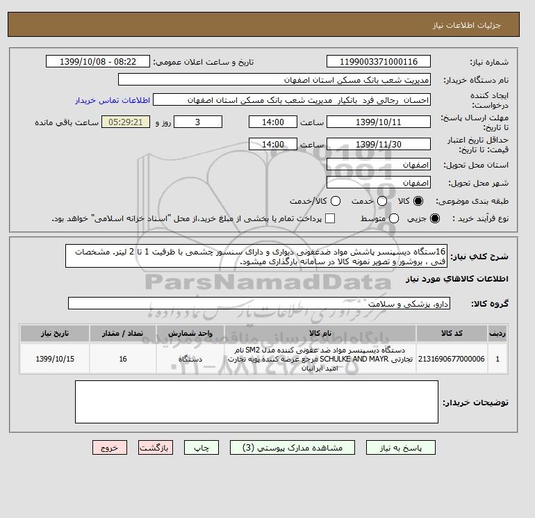 نام دستگاه خریدار:مدیریت شعب بانک مسکن استان اصفهان