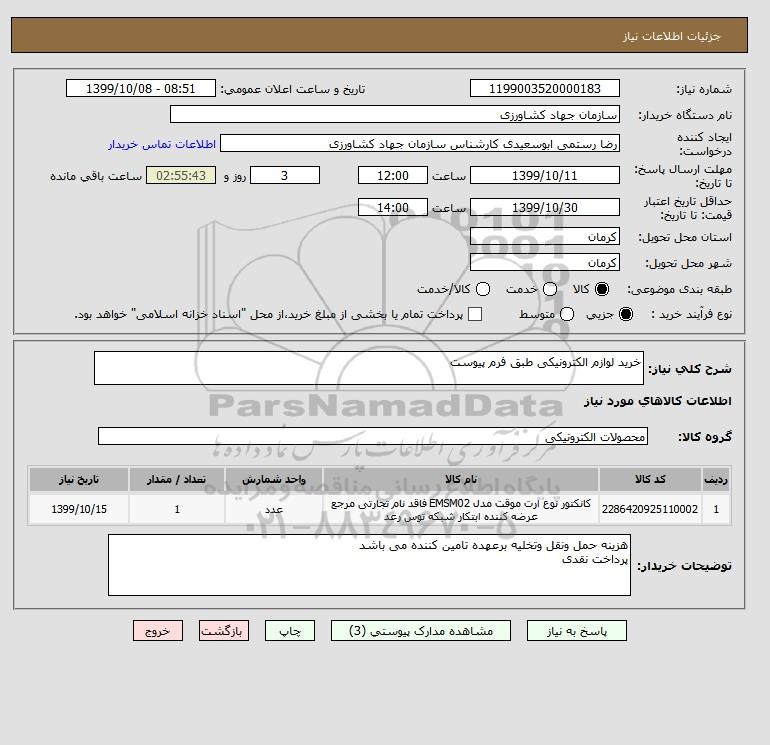 شرح کلی نیاز: خرید لوازم الکترونیکی طبق فرم پیوست