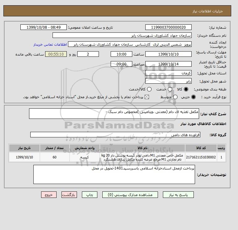 نام دستگاه خریدار:سازمان جهاد کشاورزی شهرستان رابر