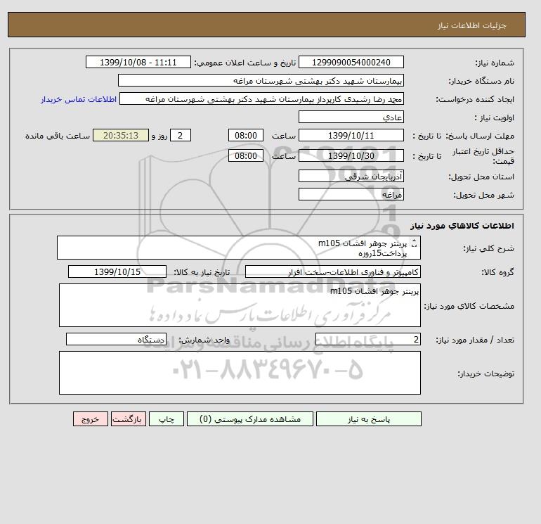 استعلام پرینتر جوهر افشان m105 پرداخت15روزه هزینه ارسال به عهده فروشنده می باشد., استعلام پرینتر جوهر افشان m105 پرداخت15روزه هزینه ارسال به عهده فروشنده می باشد.