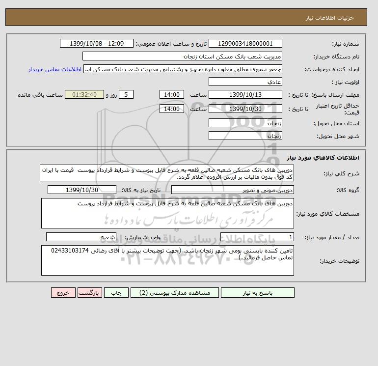 نام دستگاه خریدار:مدیریت شعب بانک مسکن استان زنجان
