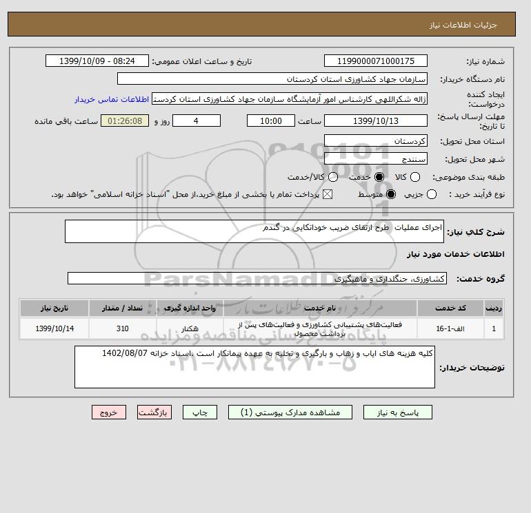 شرح کلی نیاز: اجرای عملیات طرح ارتقای ضریب خوداتکایی در گندم